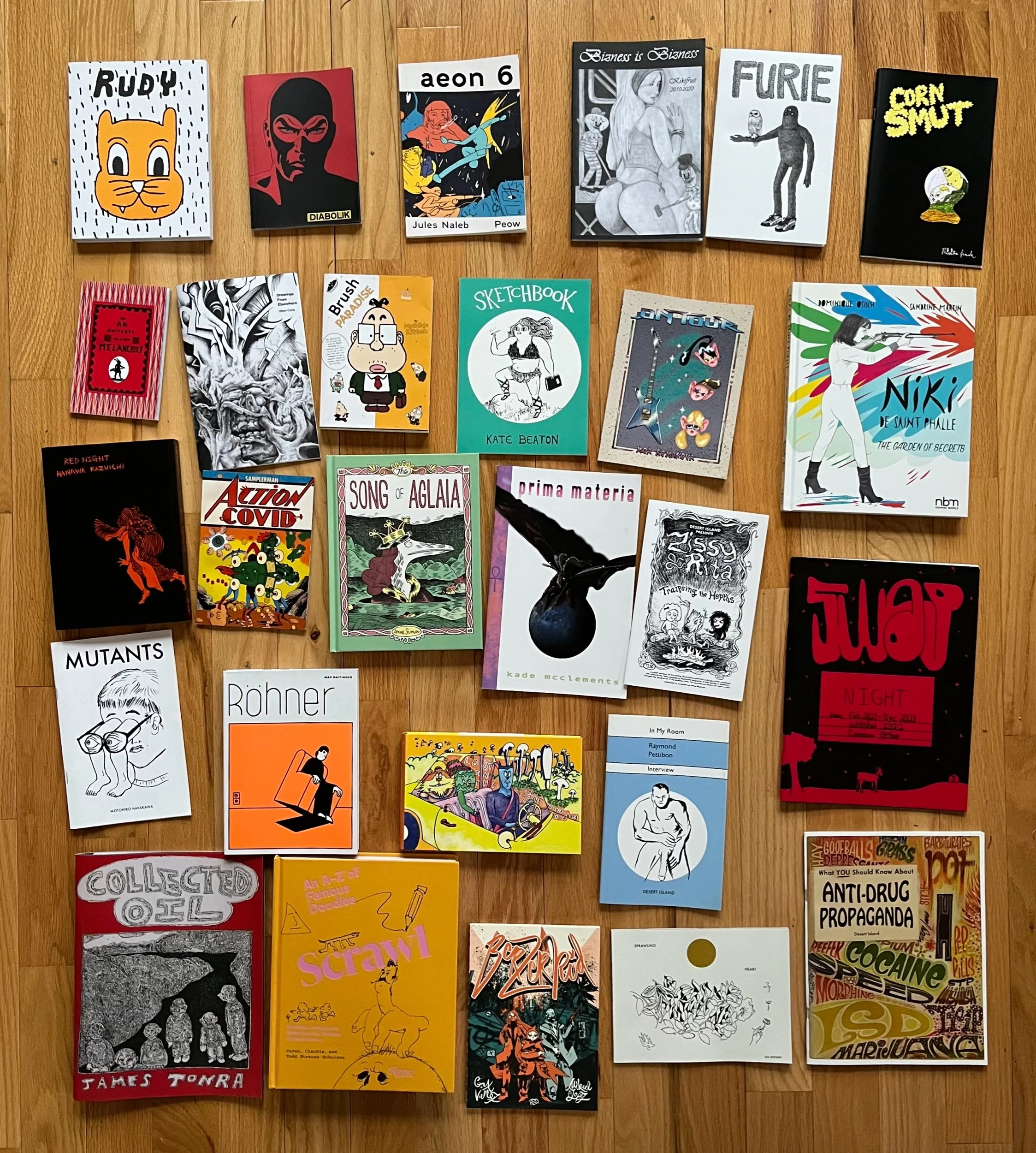 We’ve been sourcing and publishing incredible comics, graphic novels and art zines for many years for our beloved Mystery Mail subscribers, leaving us with a motley assortment of short quantities of these A-list publications. Rather than let them fossilize in our storage space, we’re blasting them out in MYSTERY GRAB BAGS, available now in limited quantities. You’ll get a 12x12x5” box stuffed with SOME (not all) of the pictured items (and other items) far exceeding the low MGB price of $30 including shipping!! Get on it because there’s not an endless supply of these bangers.